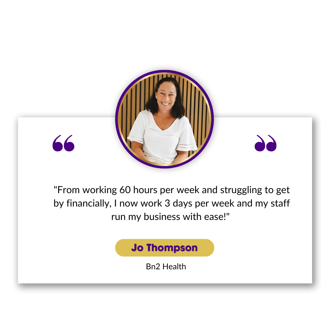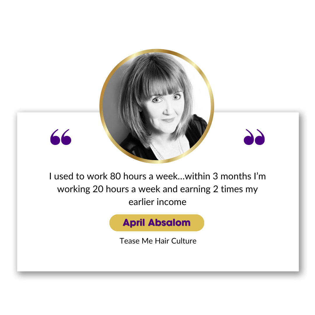 “From working 60 hours per week and struggling to get by financially, I now work 3 days per week and my staff run my business with ease!”