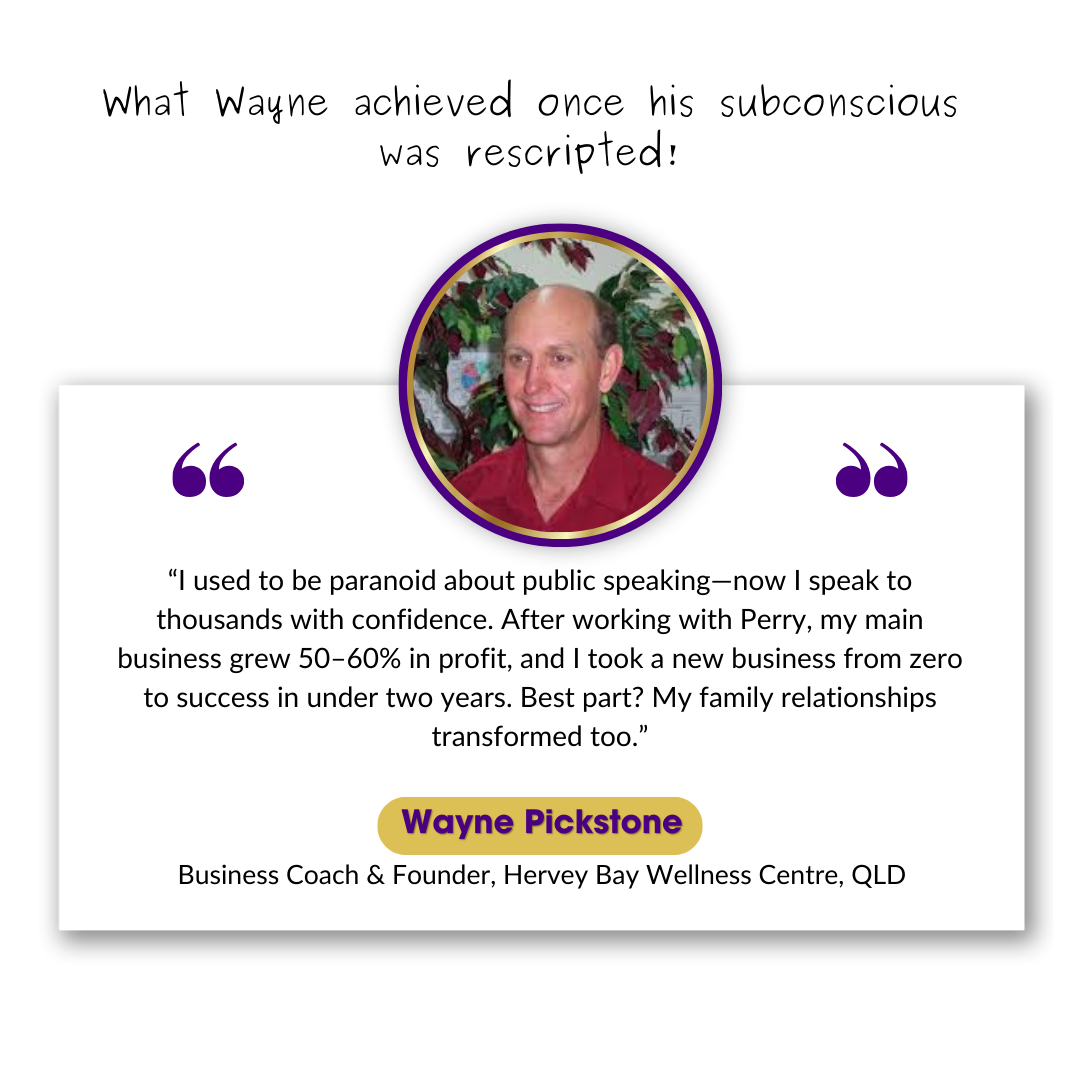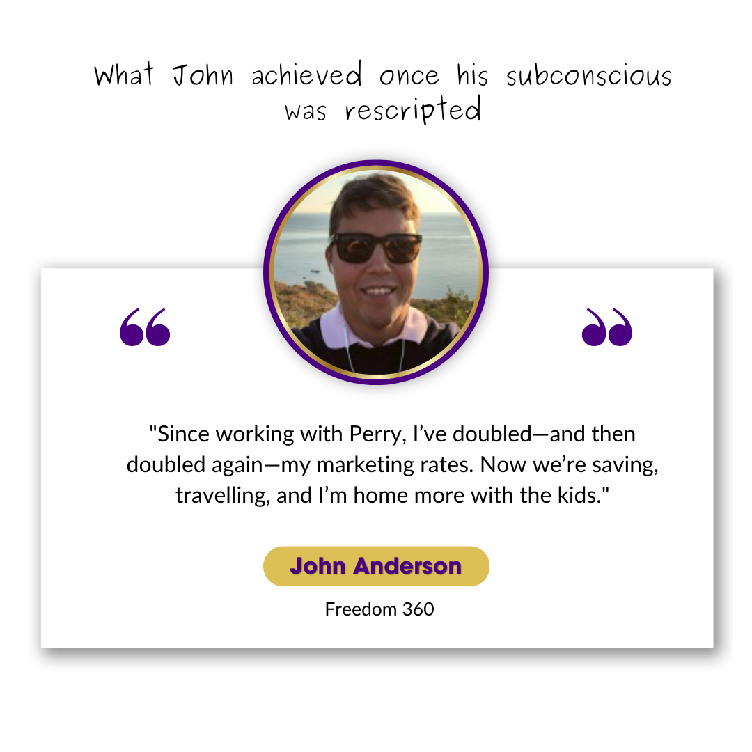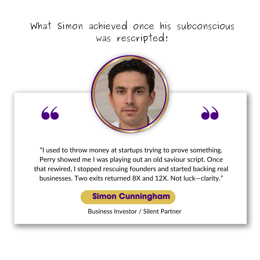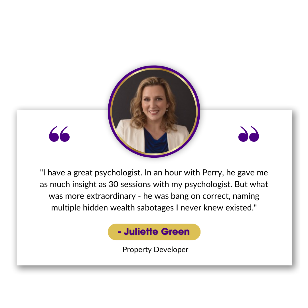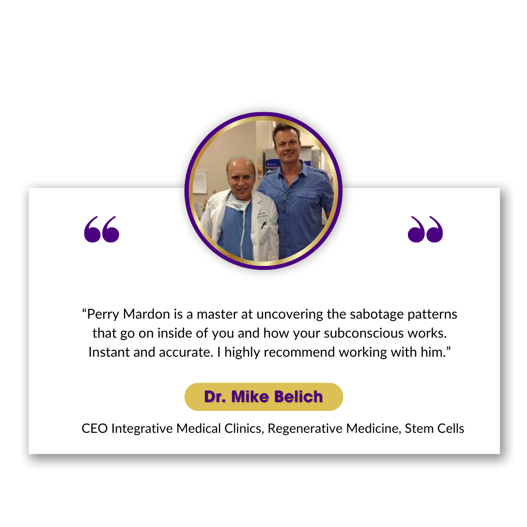 “Perry Mardon is a master at uncovering the sabotage patterns that go on inside of you and how your subconscious works. Instant and accurate. I highly recommend working with him.”